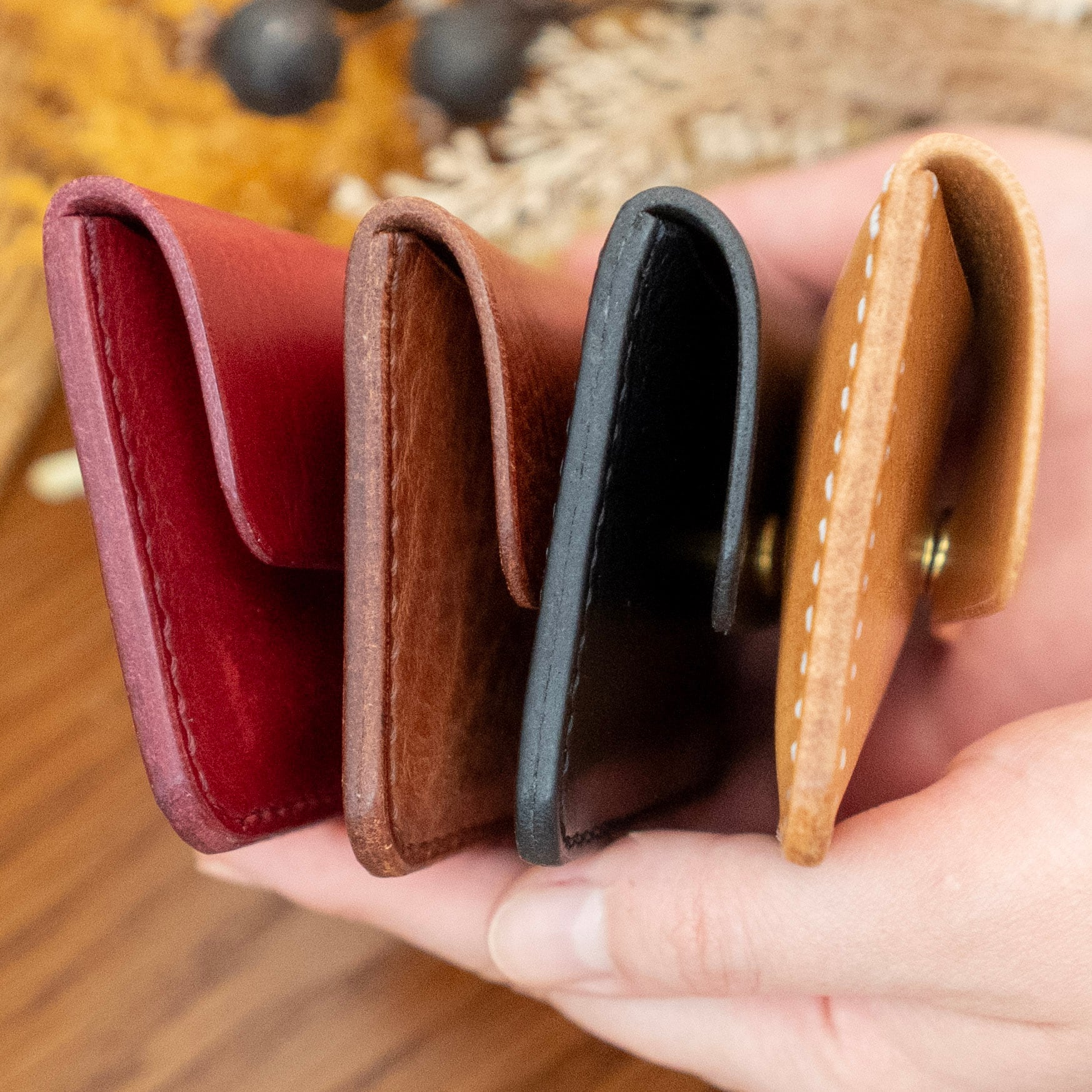 オイルをしっかり含んだ植物タンニン鞣しの革なので、使うほどに色が深まり、自然なツヤが出てきます。
